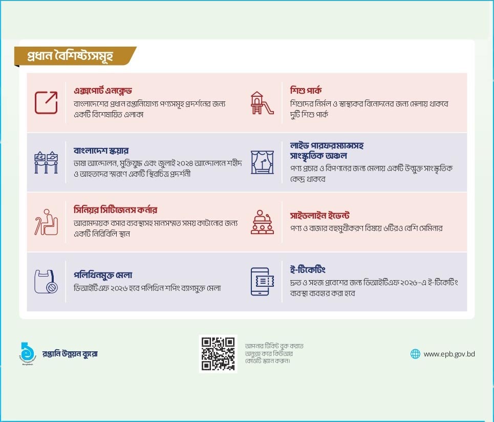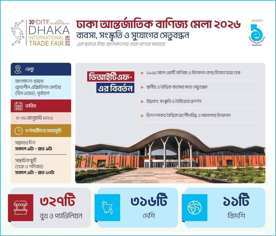DITF 2026 offers a unique opportunity to be part of Bangladesh’s largest international trade exhibition and experience the energy of a truly global marketplace.